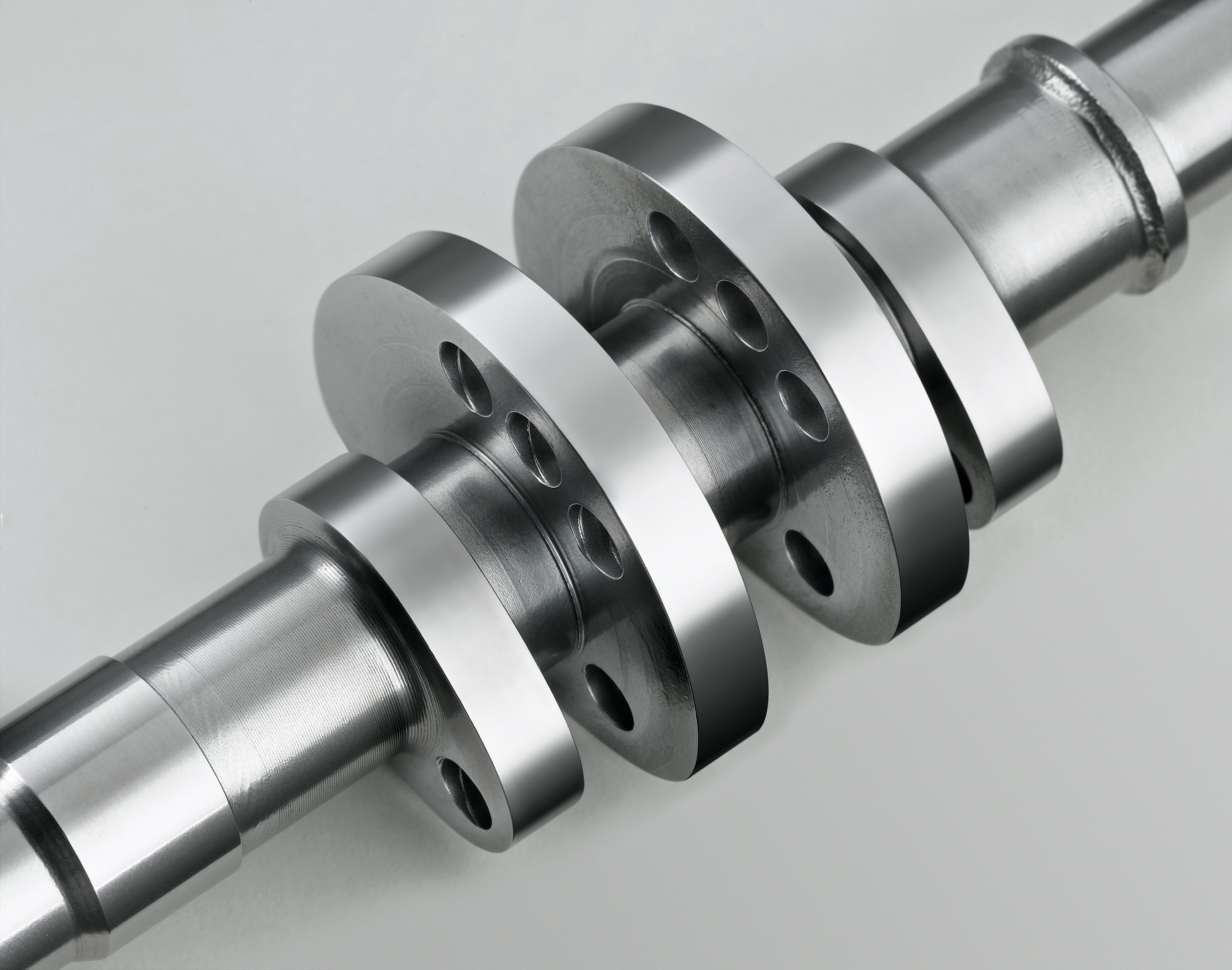 3) A camshaft after surface finishing in an Otec stream finishing machine